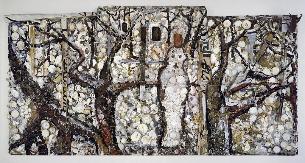 Maximalism in essence is the direct opposite of minimalism. Applying this within your design ethos ensures a must for the incorporation of more visual elements; colours, patterns, textures and decoration (Andrews 2020). Within Maximalist design is an assortment of complex shapes, colours and assets to fill out the canvas or space. While minimalism strives to use negative space, maximalism does not follow that same belief. The Artwork by Julian Schnabel “The Student of Prague” fills the canvas with a use of Oil, Plates, Horns, and Bondo on wood. There is a mass use of these components which causes the eye to be drawn to each individual part of the display that can become an assault on the eyes, but overall brings a feeling of togetherness as each section is as important as the last.